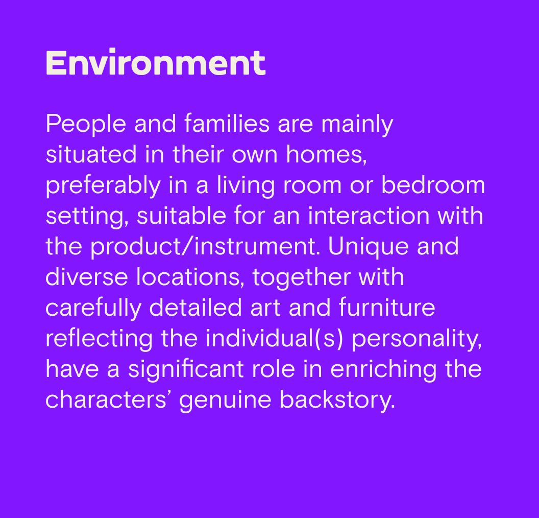 We want to capture real people, individuals and families, in their own homes while immersed in the moment of their enriching journey. We want to feature a diverse range of relatable people from all ages and backgrounds.