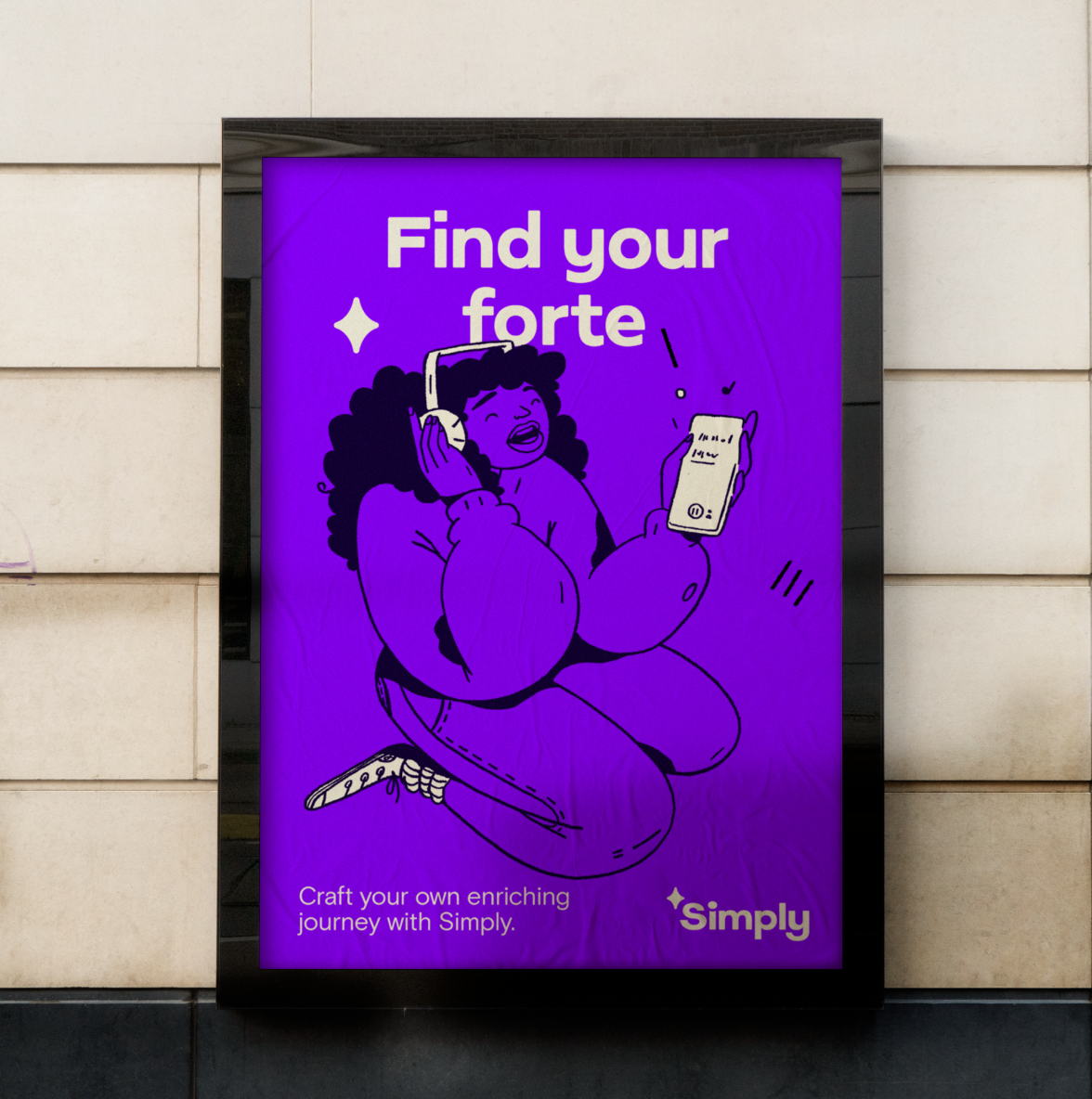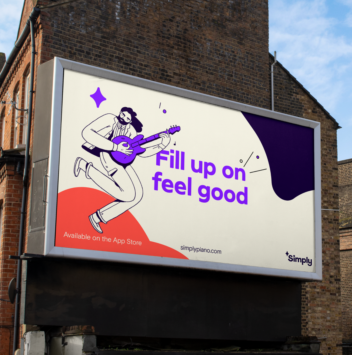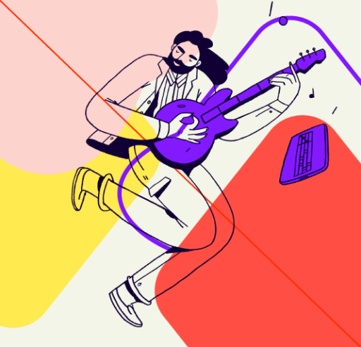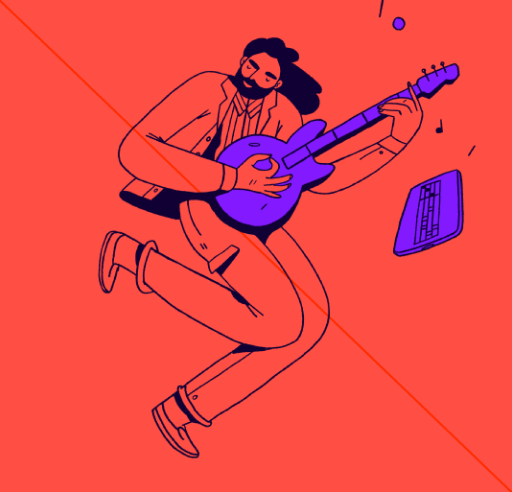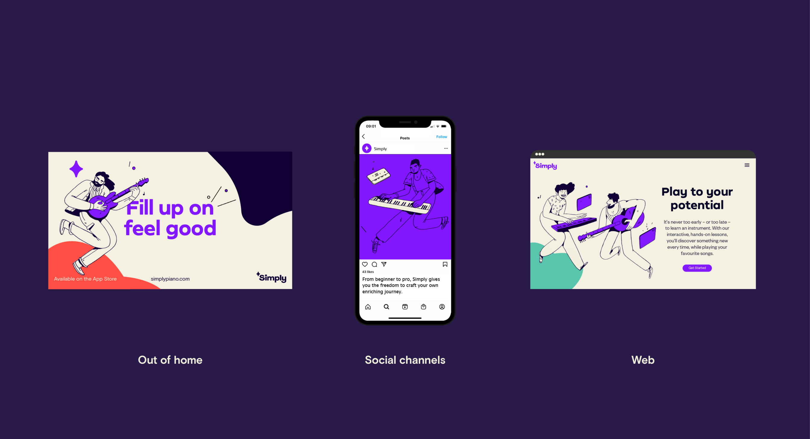 We have 4 illustration pillars that make our illustrations uniquely Simply – Authenticity, Emotion, Line art and Dynamism. These should be the starting point for creating our illustration style and ensures we avoid looking like corporate memphis. Here is an overview of our illustration style showing authentic people experiencing the joy of playing a musical instrument in their home.
