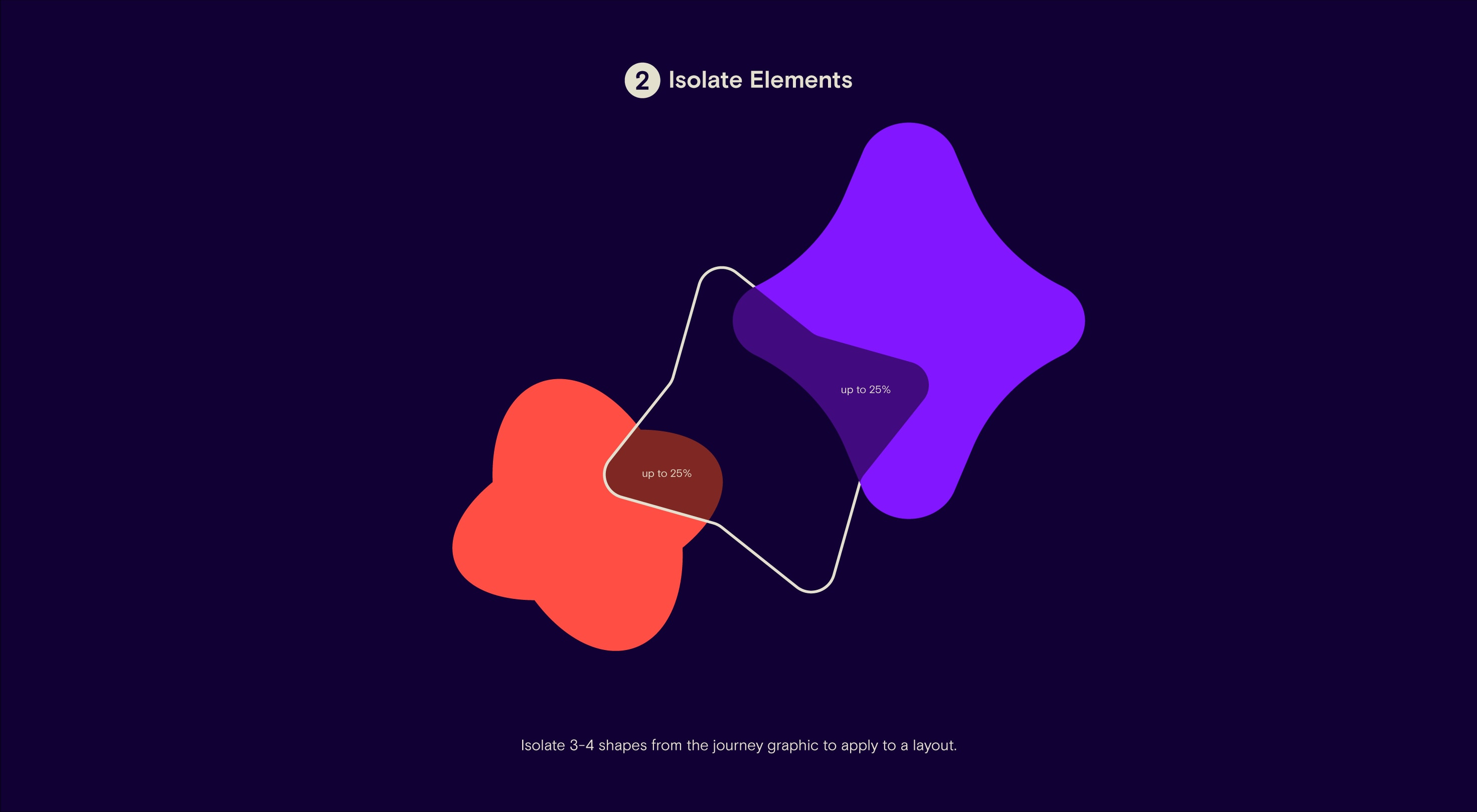To create a graphic segment of our journey graphic, we need to take up to 4 spark elements and combine them as per the visual below. Then, scale this up across the desired layout and shift it to pair up with the title accordingly.