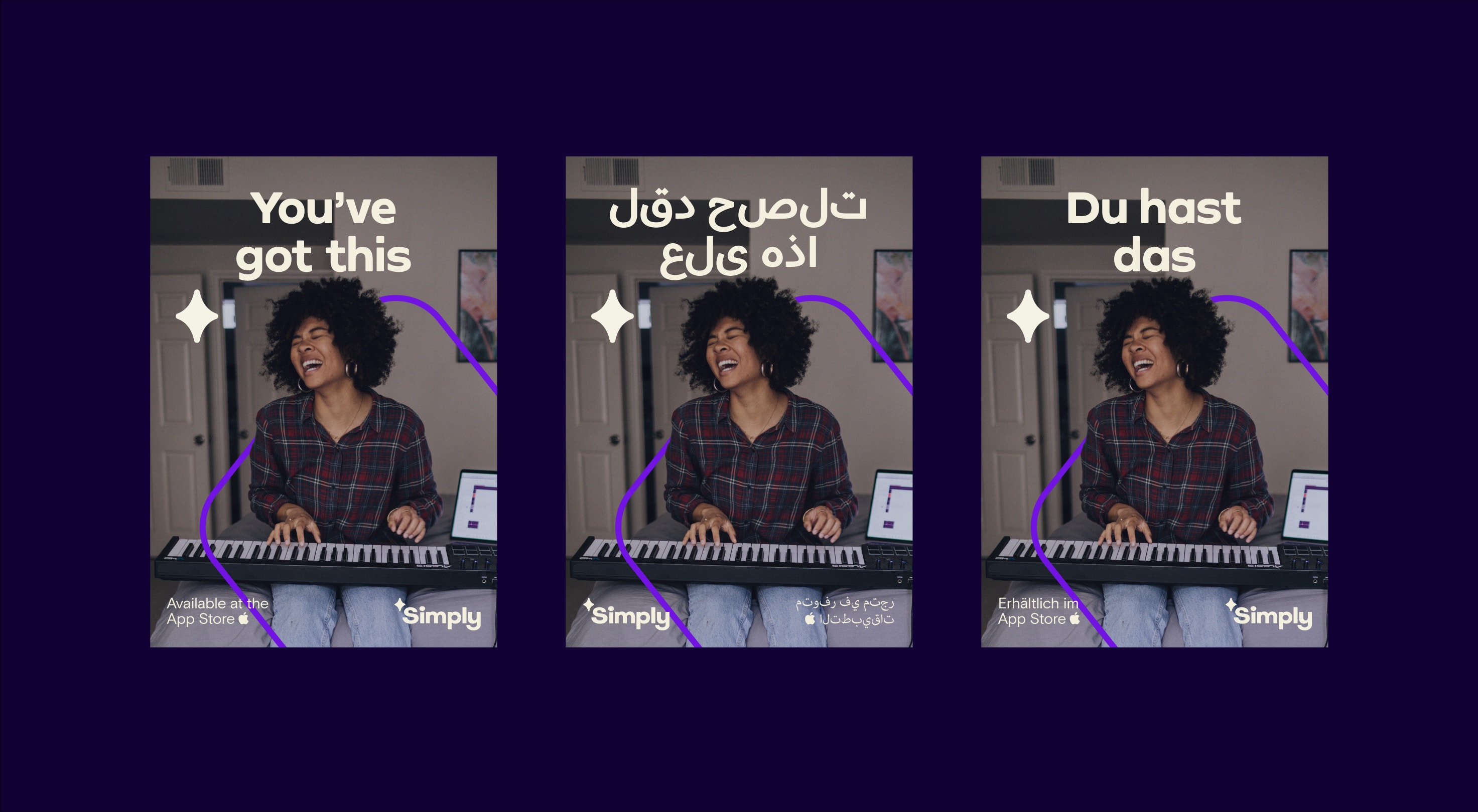 Here is an example of how we create layouts when reading right to left. Our headlines remain center aligned and appear in one of our international alternative fonts stated in the typography section. Our sub-header text swaps alignment to the native reader’s direction.