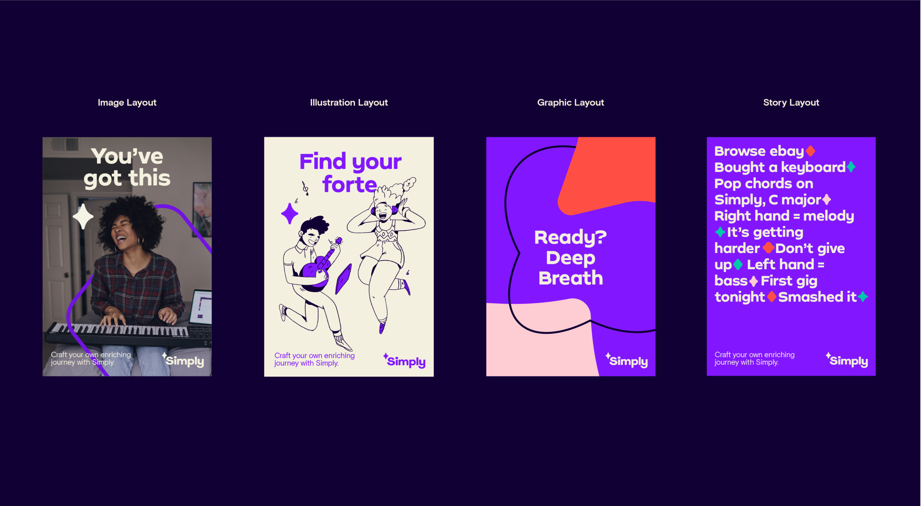 Below are some examples of the different types of layouts we can create for Simply brand communications.