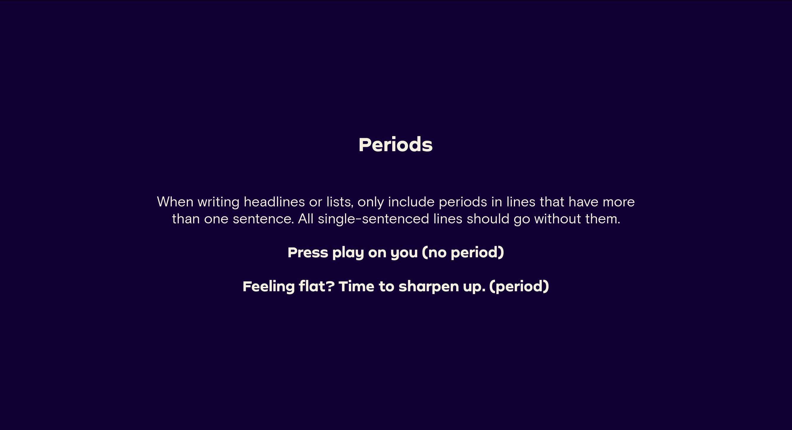 Here’s how we can apply our Tone of Voice to different channels while maintaining a unified identity. It’s important to remember: keep it short and concise. Don’t use more words than you need to make your point, especially in digital formats where attention spans are short.