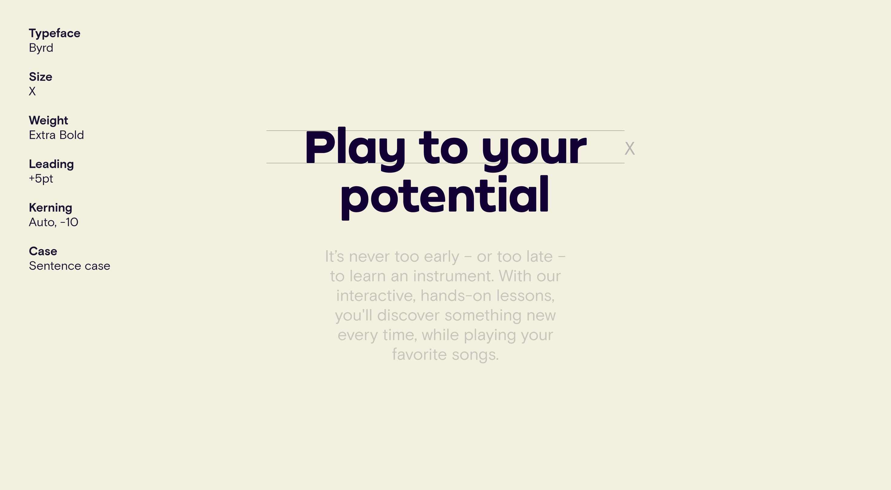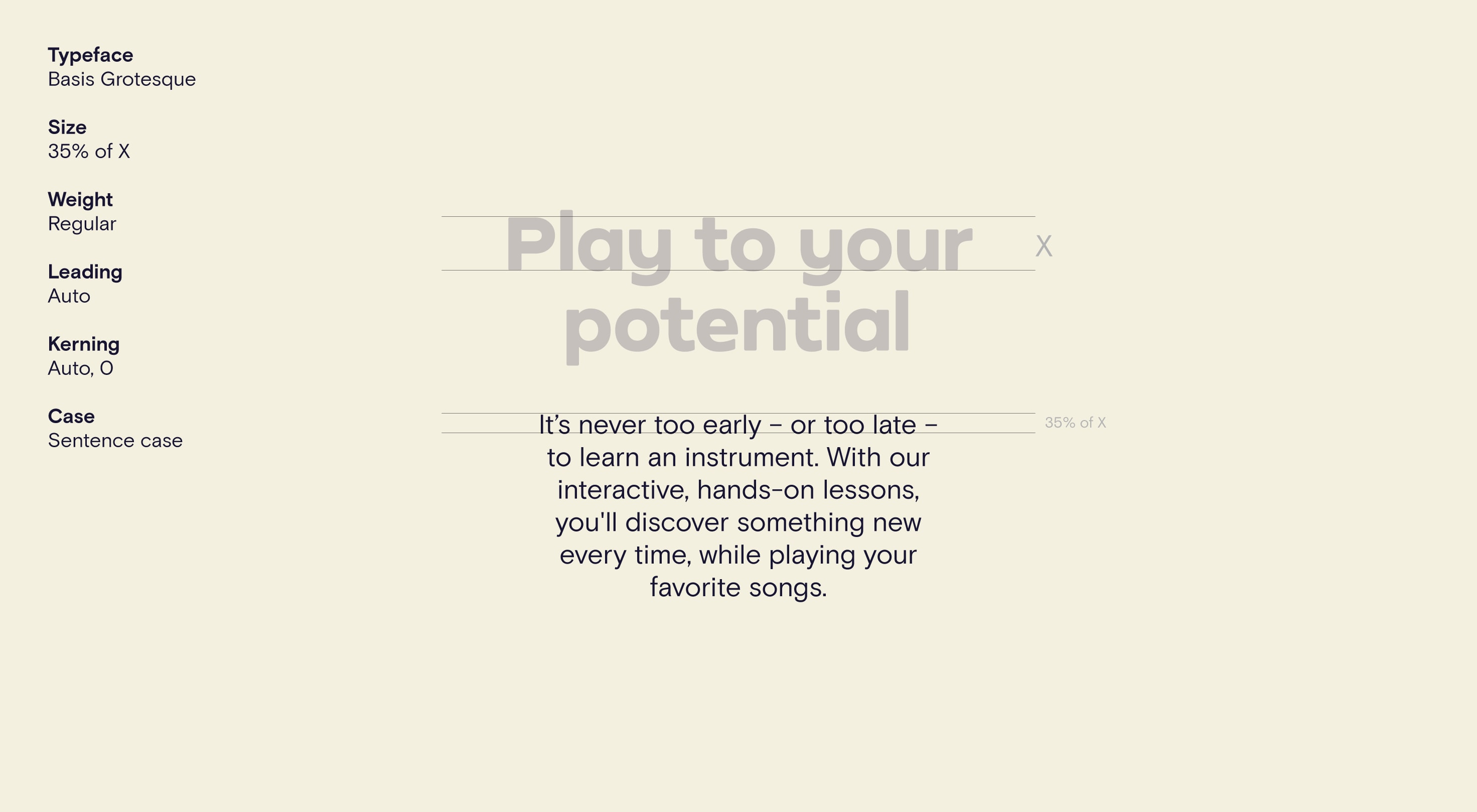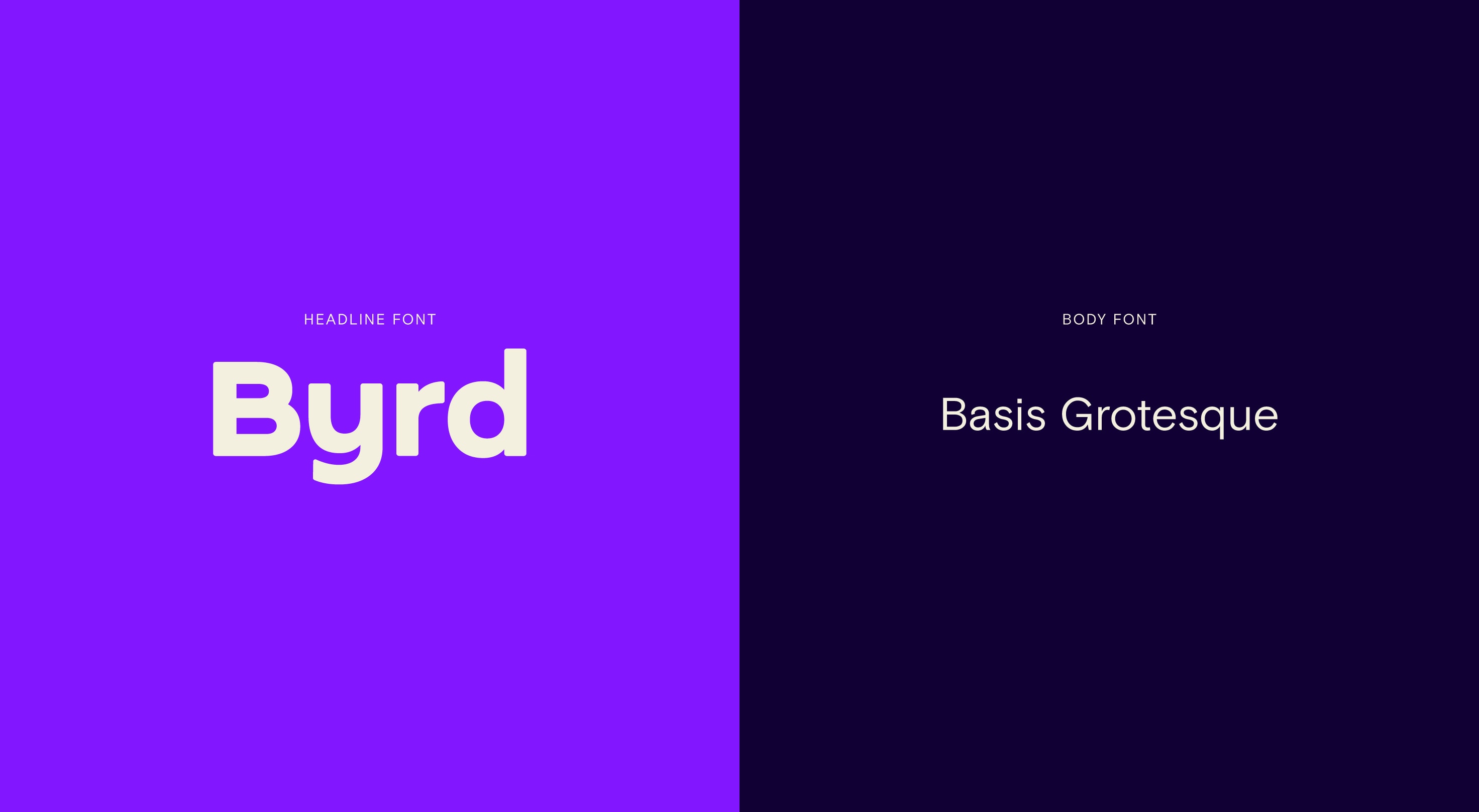 Our two core typefaces provide us with plenty of flexibility. We use our custom headline font Byrd to convey joyful and welcoming primary messaging. We use our body font Basis Grotesque for clear, functional secondary messaging.